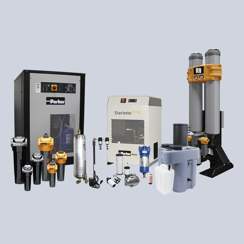 - Secadores de tipo membrana, refrigerativo, absorción o regenerativo desde 4 hasta 9,000 SCFM. Cumple los códigos ISO8573-1 de acuerdo a su aplicación. Ideal para la eliminación de vapores de agua, partículas, aceite y diversos contaminantes generados en su sistema.