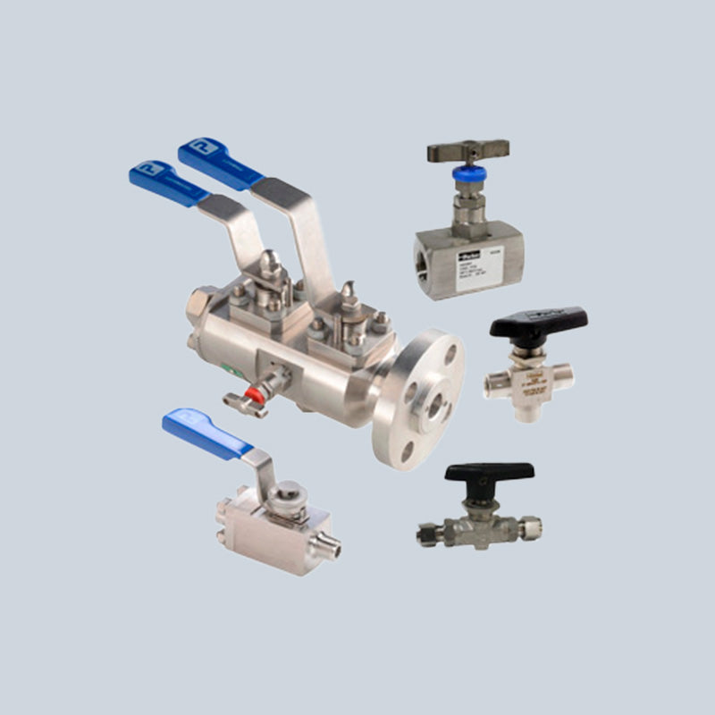 - Válvulas de bola, aguja, check, alivio, reguladoras, entre otras. En configuraciones con tuerca y barril y roscadas en acero inoxidable 316. Se pueden configurar con diferentes tipos de maneral dependiendo de su aplicación.