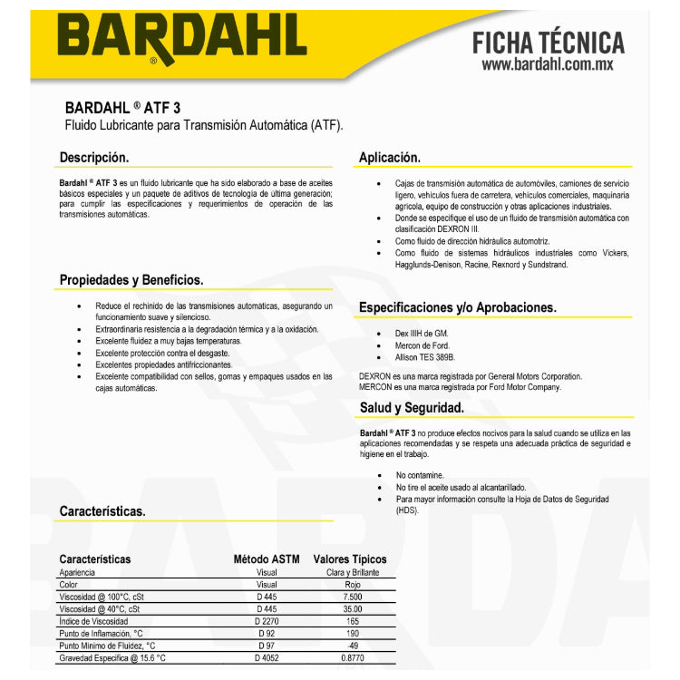 ATF-3 protege contra la friccion extrema que se genera en la caja automatica y disipa el calor, evita la corrosion y el desgaste.