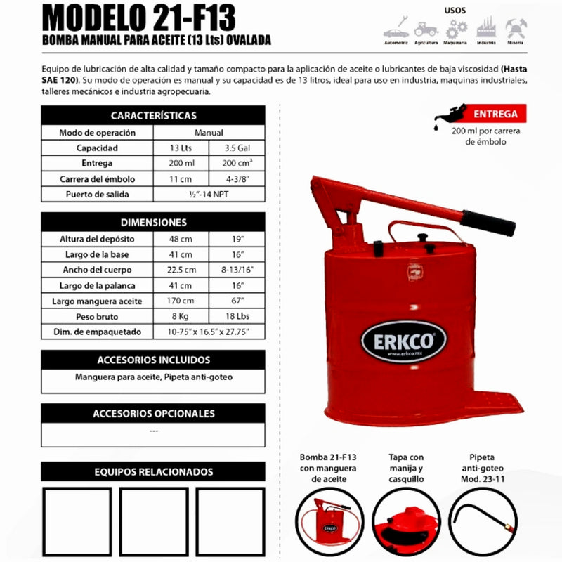 Bomba para Aceite 13Lts Compacta ERKCO