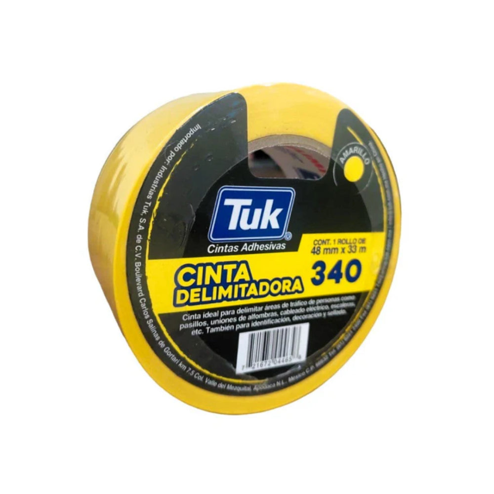La Cinta Amarilla Adhesiva Tuk de 48 mm x 33 m ofrece una adhesión fuerte y duradera, ideal para señalización y marcaje en entornos industriales o comerciales.