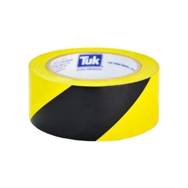 La Cinta Delimitadora Tuk 340 en colores amarillo y negro, con un ancho de 48 mm y una longitud de 33 metros, es ideal para señalizar áreas de seguridad y delimitar espacios de manera clara y efectiva.