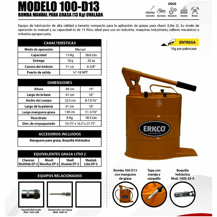 Cubeta Manual Ovalada para Grasa 13kg ERKCO