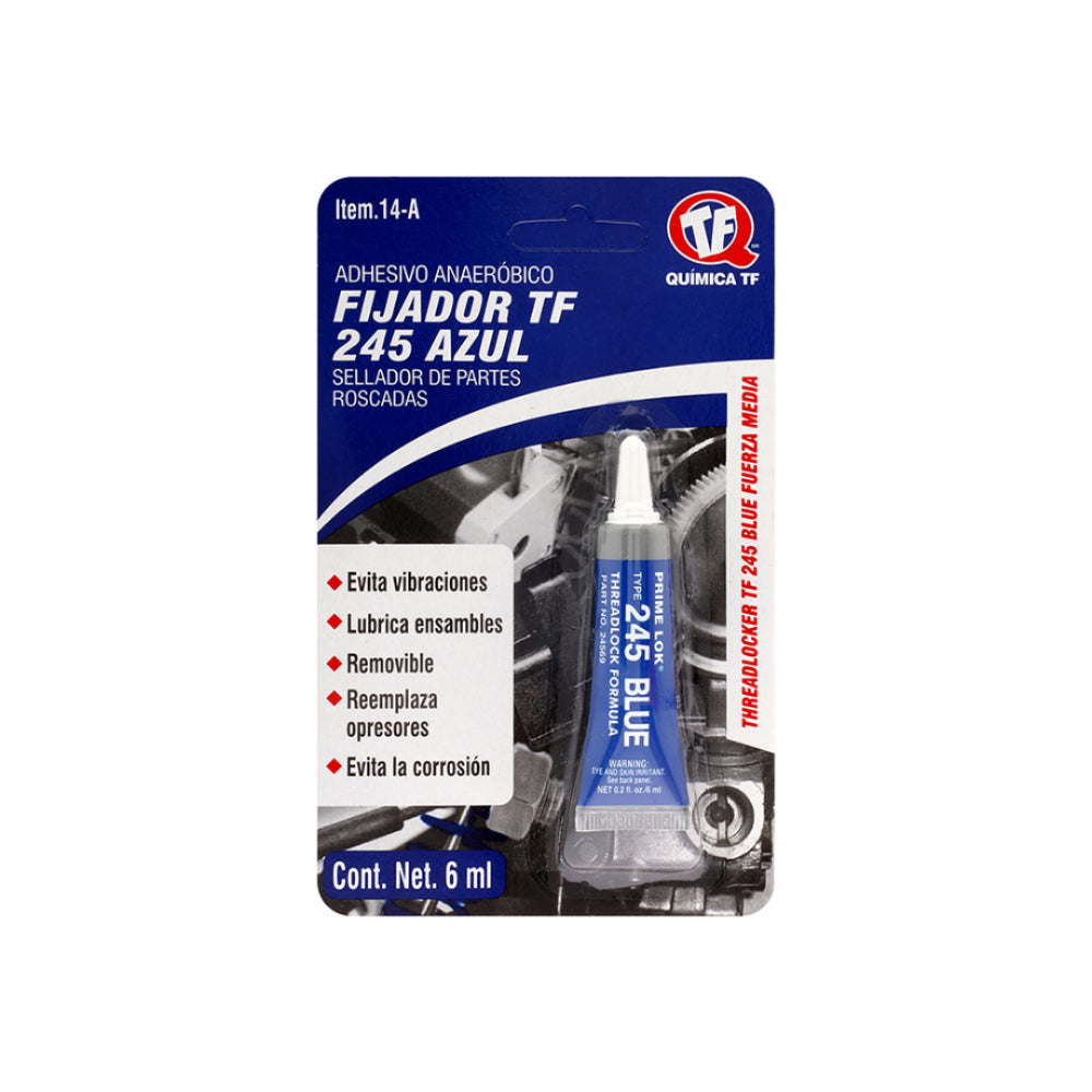 El Fijador de Roscas Azul QTF es un adhesivo diseñado para asegurar y sellar conexiones roscadas, previniendo aflojamiento por vibraciones o movimientos. Su fórmula proporciona una fijación fuerte pero desmontable, ideal para aplicaciones mecánicas que requieren mantenimiento periódico. Este fijador garantiza la integridad de las uniones, evitando fugas y mejorando la seguridad en sistemas industriales y automotrices.