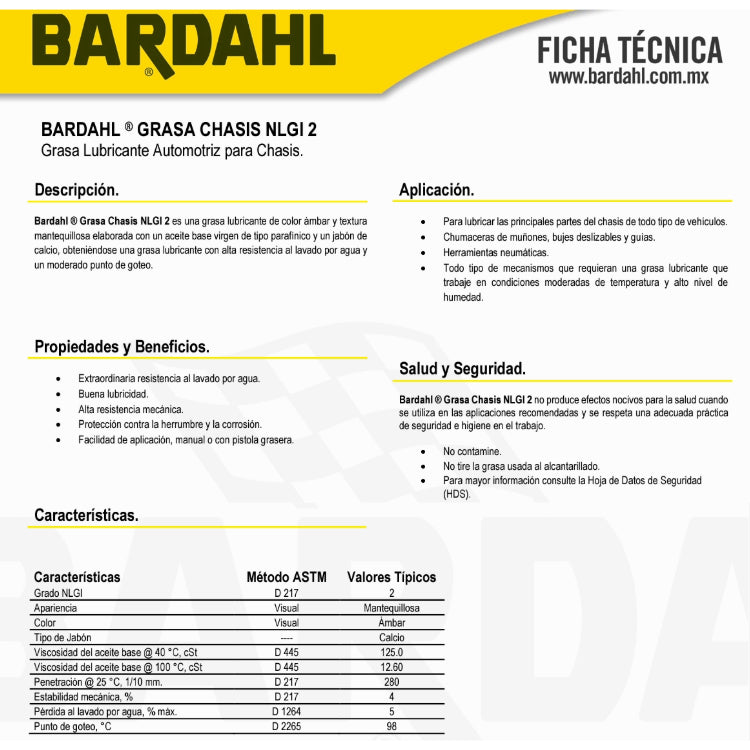 Es una grasa lubricante de muy alta resistencia al contacto con el agua, principalmente para la proteccion y lubricacion de partes del chasis automotriz.