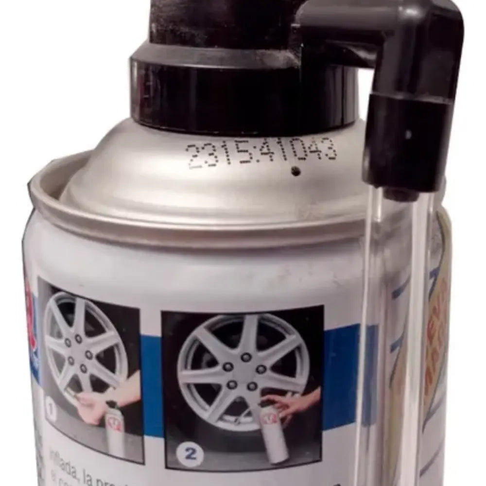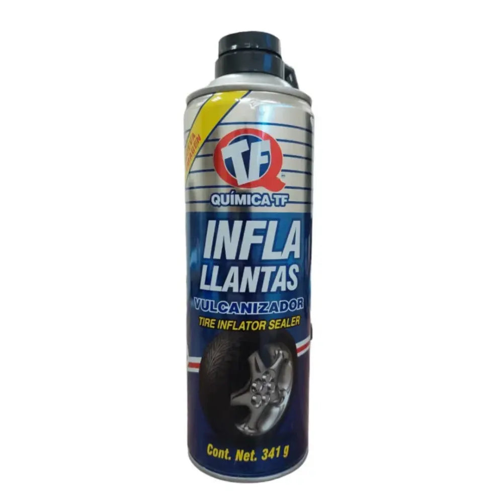 INFLALLANTAS TF presuriza una llanta de rodada R13 a R16 a una presion aproximada de 30 psi sin necesidad de quitar la llanta, ya que el bote cuenta con suficiente presion y una valvula especial que permite aplicar directamente el gas a la llanta en 30 segundos.