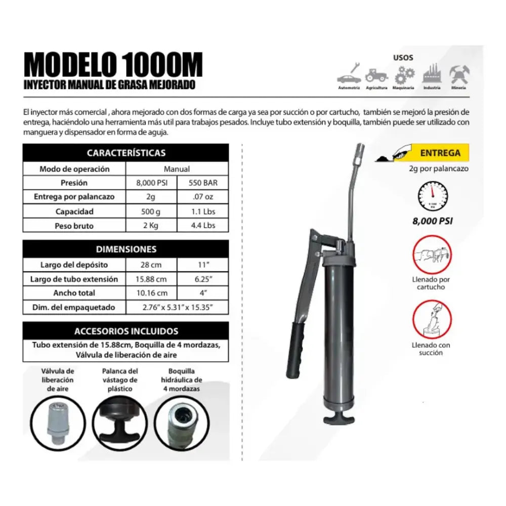 Inyector Manual De Grasa 1000m Erkco